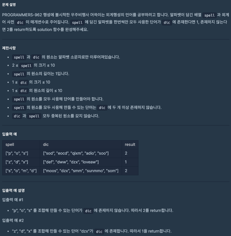 public int solution(String[] spell, String[] dic) {