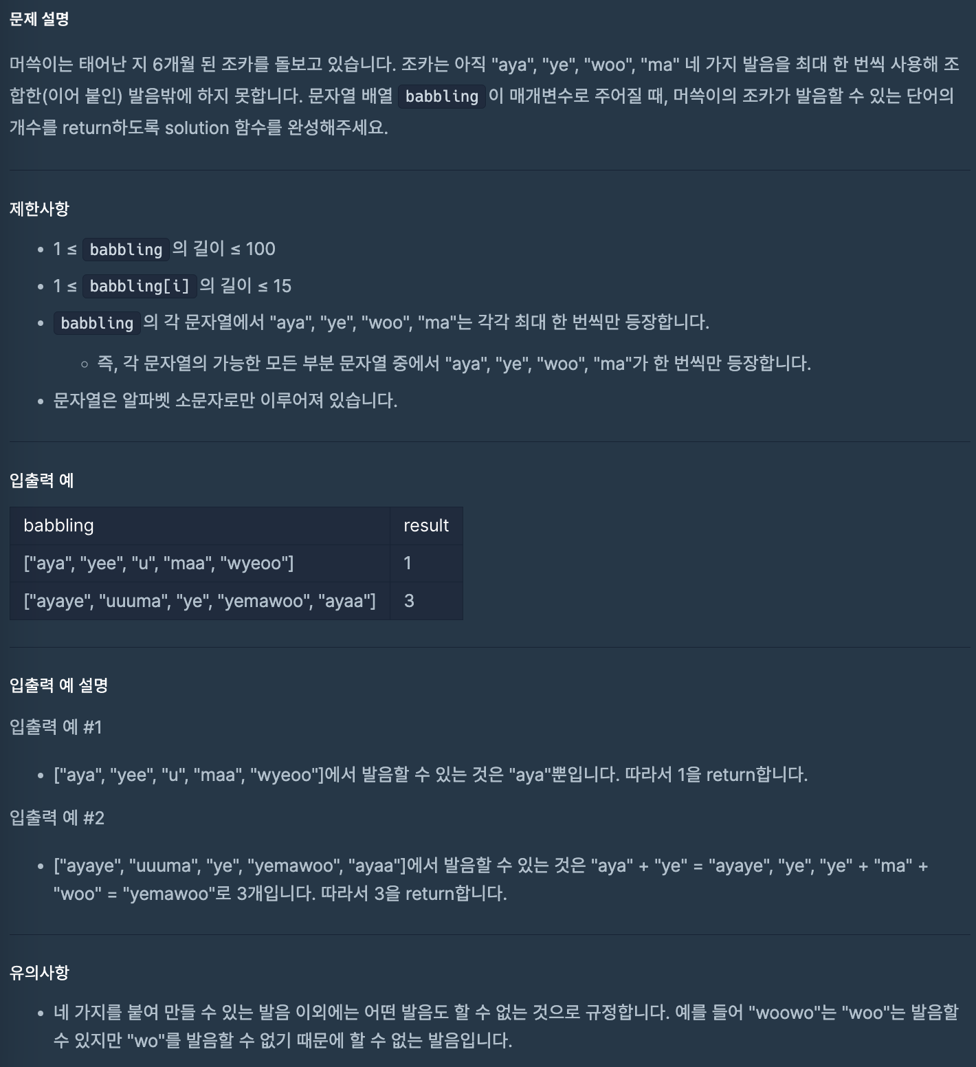public int solution(String[] babbling) {