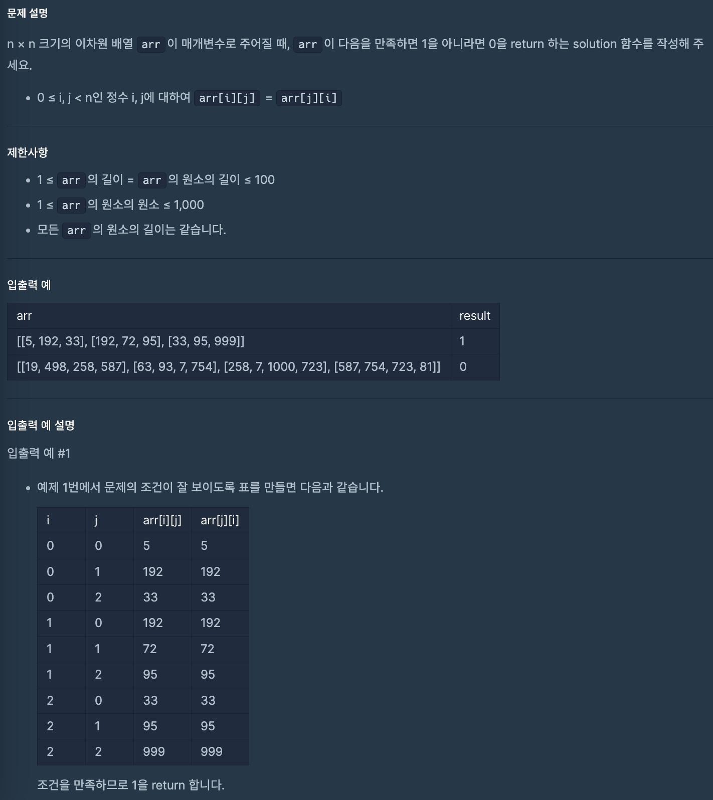 if (arr[i][j] != arr[j][i]) {