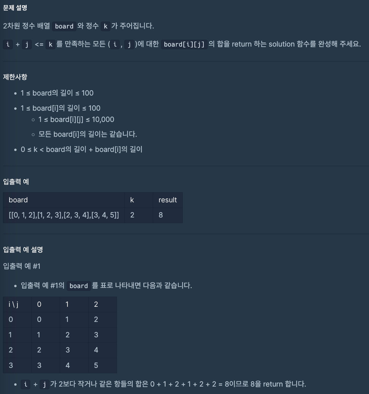 public int solution(int[][] board, int k) {