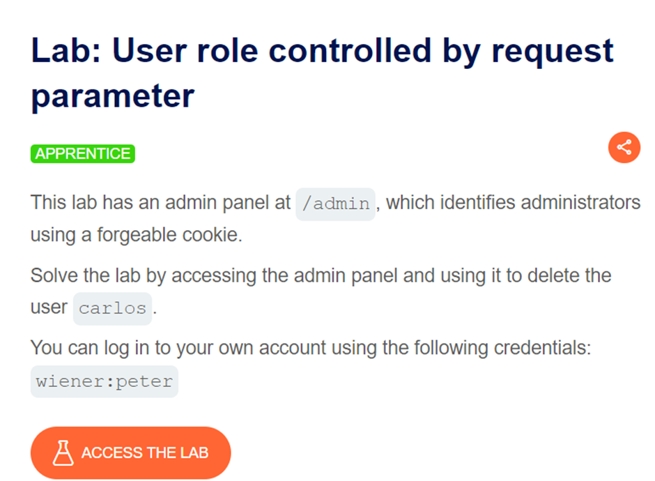 로그인 페이지(/login)에 접속해 문제에서 주어진 credentials인 wiener:peter로 로그인한다.