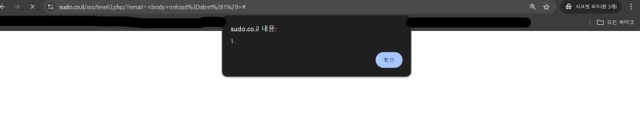 body 태그에 onload 이벤트 핸들러가 설정되어 있다. onload 이벤트는 페이지나 특정 요소(여기서는 )가 완전히 로드되었을 때 발생한다. 사용자가 페이지를 처음 로드하거나 새로고침할 때 이 이벤트가 발생하고, alert(1)이 실행된다. 결과적으로, 페이지가 로드되면 "1"이라는 경고 메시지가 표시된다.