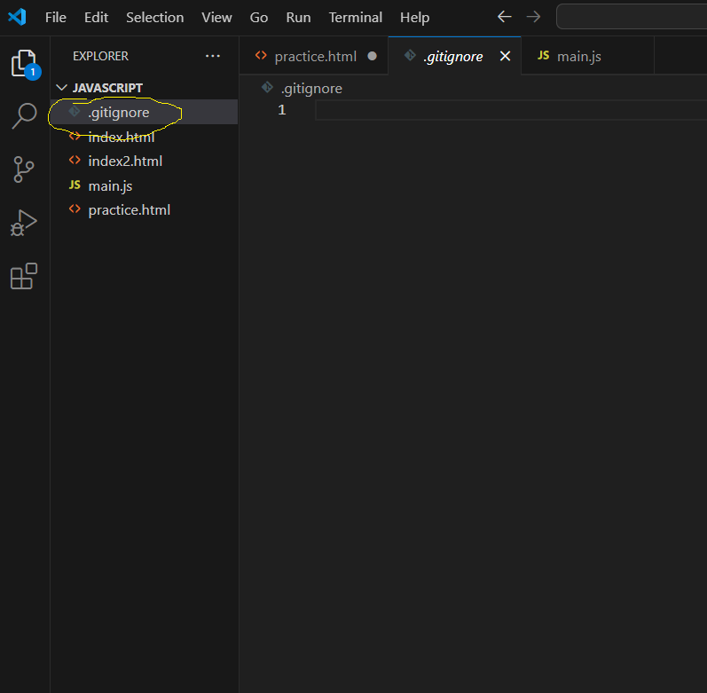 열린 터미널 창에 위와 같이 적어주시면 .gitignore 파일이 생깁니다!