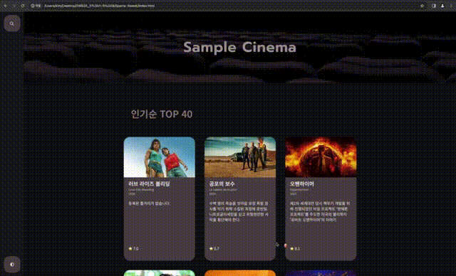 전부 해놓았다. 그런데 이 메인 홈페이지가 켜질 때 그냥 띡 하고 출력되는 게 허전해 보이기도 하고 또, 영화 사이트 컨셉에 맞게 마우스 포인터 부분에 뭔가 관련된 걸 추가해 주고 싶었다.