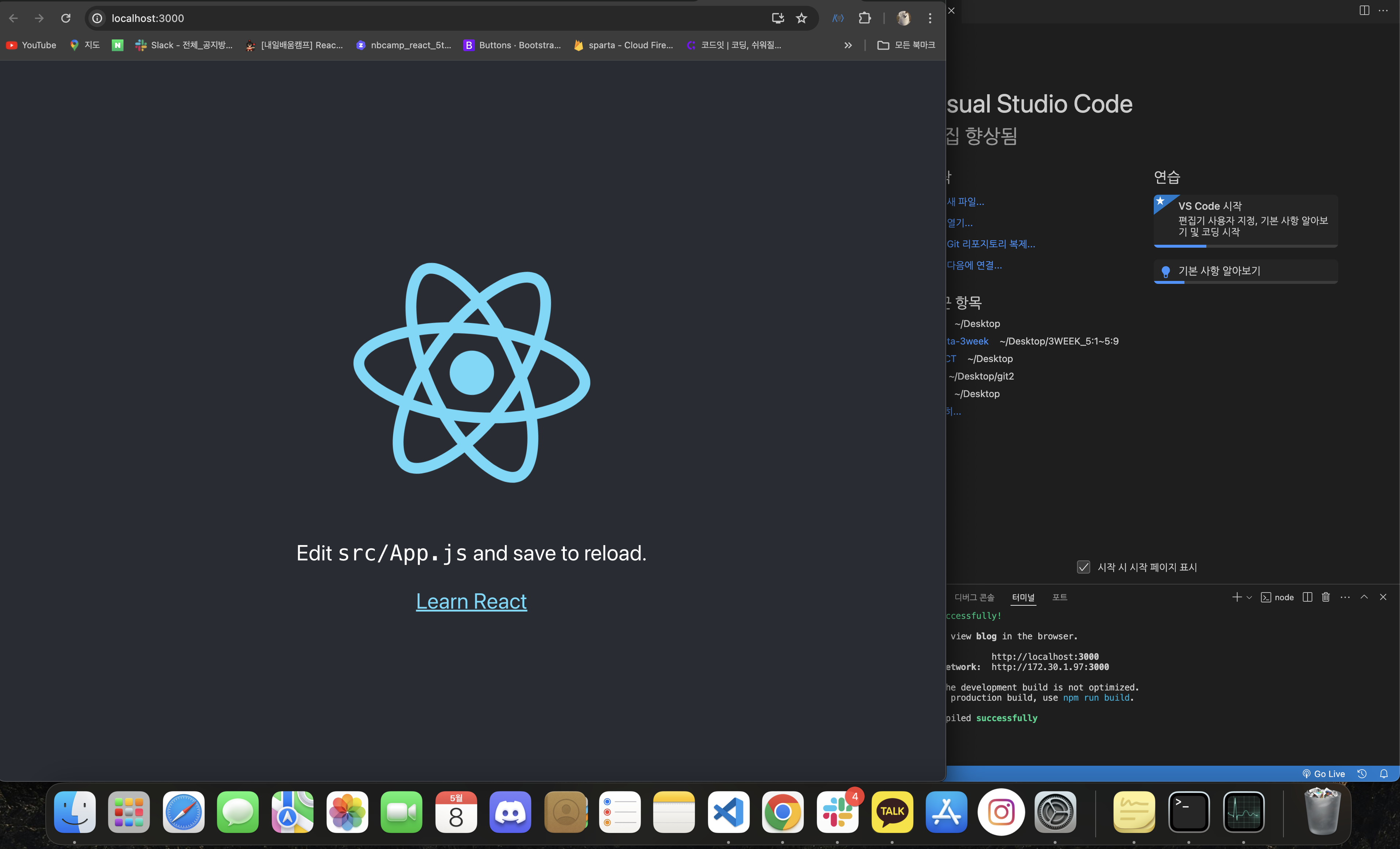어제 리액트를 다 다운받고, 오늘 자고 일어나서 기분 좋게 npm start를