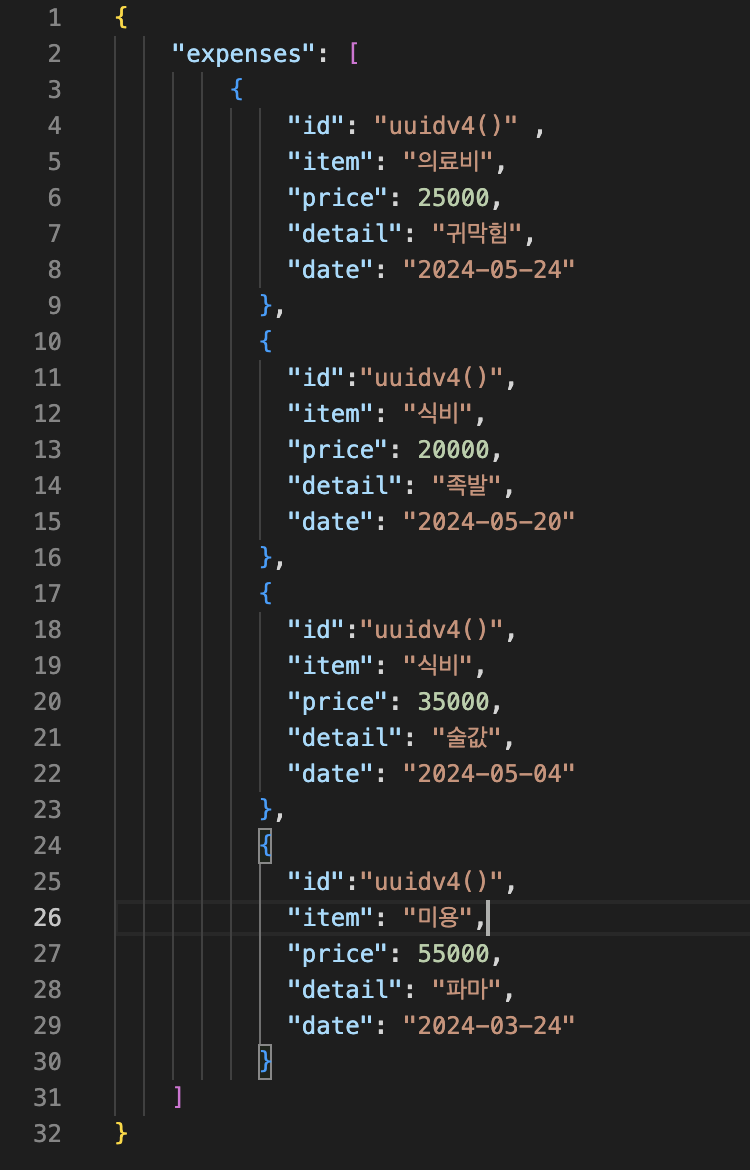 기존에는 uuidv4로 각각 다른 id를 부여해줬었는데 db.json에선 다 똑같은 문자열 형태인 "uuidv4()"로 돼있어서 그랬었던 거다