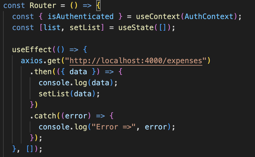화면에 정보를 불러와야 하는데 최초 렌더링 시에만 불러오게끔 useEffect를 사용하고 dependency array 값으로 빈 배열을 넣어줌으로써 최초 렌더링 시에만 useEffect 안에서 axios.get 메서드를 통해 json server에서 필요한 데이터를 가져오는 로직을 작성해줬다