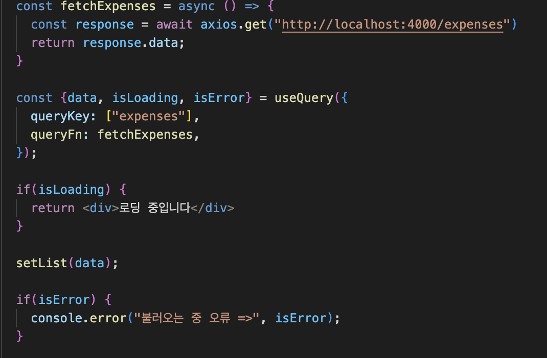 그래서 정보를 불러와야 하는 컴포넌트 내부에서 useQuery()를 사용해 코드를 구성해봤다.