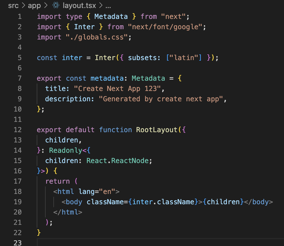์ฐ๋ฆฐ ๋ง๋ ์ ์ด ์์ง๋ง, Next.js ํ๋ก์ ํธ๋ฅผ ์์ฑํ๊ณ ๋๋ฉด ์ด๋ฏธ root ๊ฒฝ๋ก์ layout.tsx ํ์ผ์ด ์กด์ฌํจ