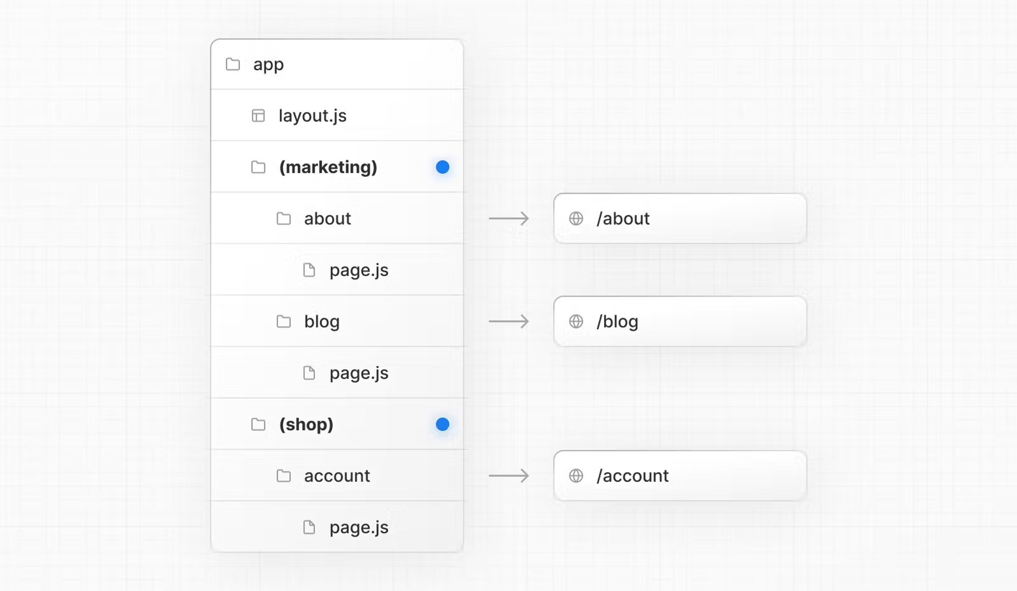 Next.jsx์์๋ Routing์ ํด๋ ๊ธฐ๋ฐ(Nested Folders)๋ก ๊ตฌํ์ ํ๊ณ ์์. ์ด ๊ณผ์ ์์ ๋ผ์ฐํธ์ ๋ํ ํน์ ์ฒ๋ฆฌ๋ฅผ ์ํด ์์ฑ๋๋ ์ฌ๋ฌ