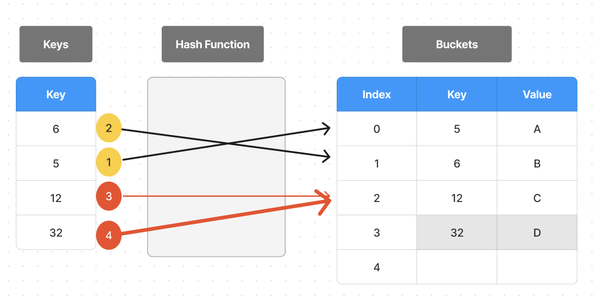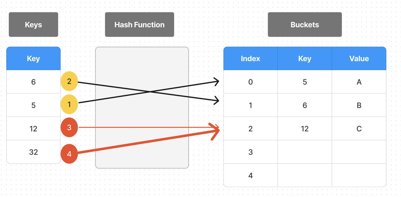 그러나 해시 함수에서 서로 다른 입력값에 대해 해시 함수의 결괏값이 같을 수도 있는데 이것을 해시 충돌이라고 부른다.