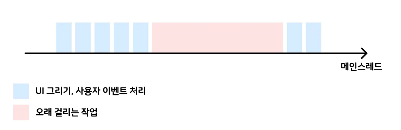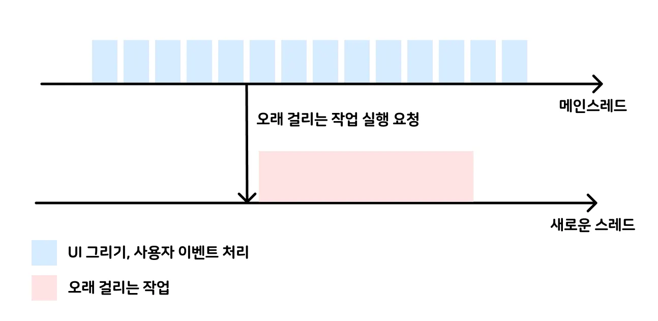 오래 걸리는 작업을 백그라운드 스레드에서 처리하도록 만들면 메인 스레드에서 UI가 멈추거나 사용자 입력을 처리하지 못하는 현상을 방지할 수 있다.