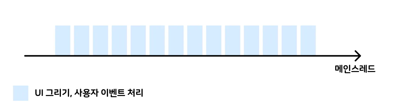 이처럼 화면을 보여주고 사용자가 화면을 눌러 앱과 상호작용 하는 것을 안드로이드 애플리케이션에서는 기본적으로 메인 스레드에서 진행한다.