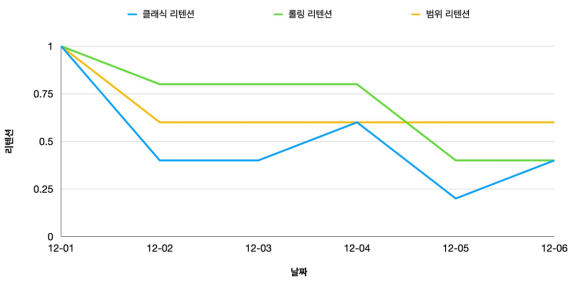 다양한 계산 방법에 따른 리텐션 차이