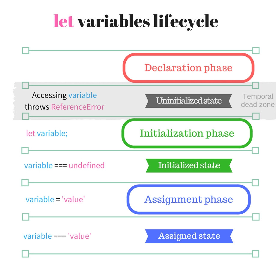 let으로 선언된 변수는 var 키워드와는 다르게 선언단계와 초기화 단계가 분리되어서 진행됨