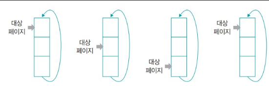 - 스왑 영역으로 옮길 대상 페이지를 가리키는 포인터 사용