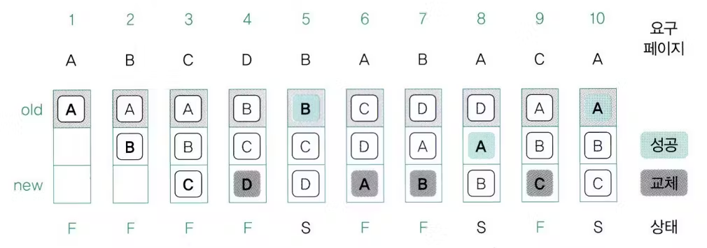 - 대상 페이지 : 가장 오랫동안 사용되지 않은 페이지