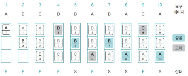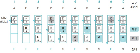- 1번에서 페이지 A가 메모리 올라오면 대상 포인터는 A를 가리킴