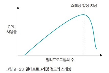 - 멀티프로그래밍 정도가 너무 높으면 쓰레싱 발생