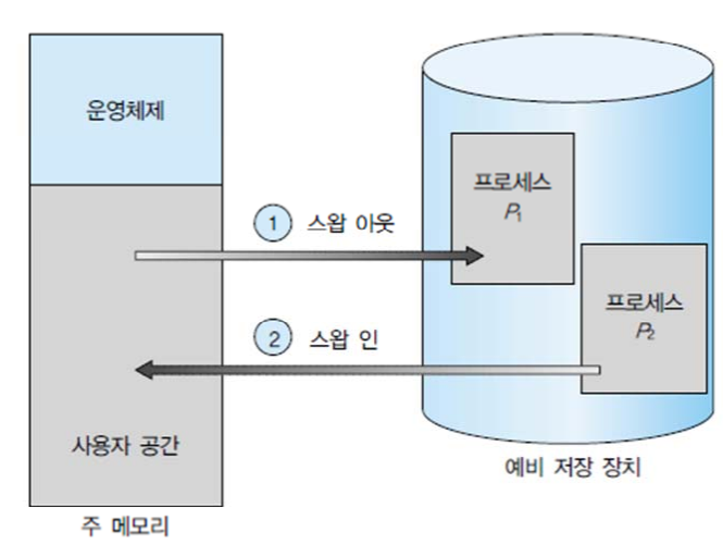 새로운 프로그램을 메모리에 올릴려면 기존 프로그램을 스왑영역으로 옮겨야함