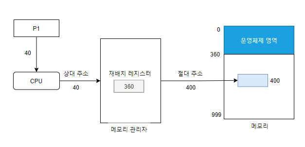 - 절대주소 = 상대주소 + 재배치 레지스터값