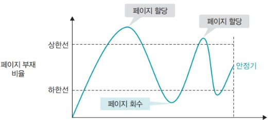 - 프로세스 실행하면서 추가적으로 페이지를 할당하거나 회수해 적정 페이지 할당량 조절