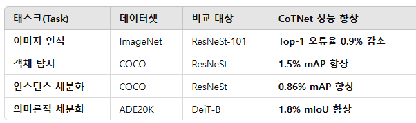 ✅ 기존 ResNet 구조를 간단히 업그레이드 가능 (3×3 컨볼루션을 CoT 블록으로 교체)