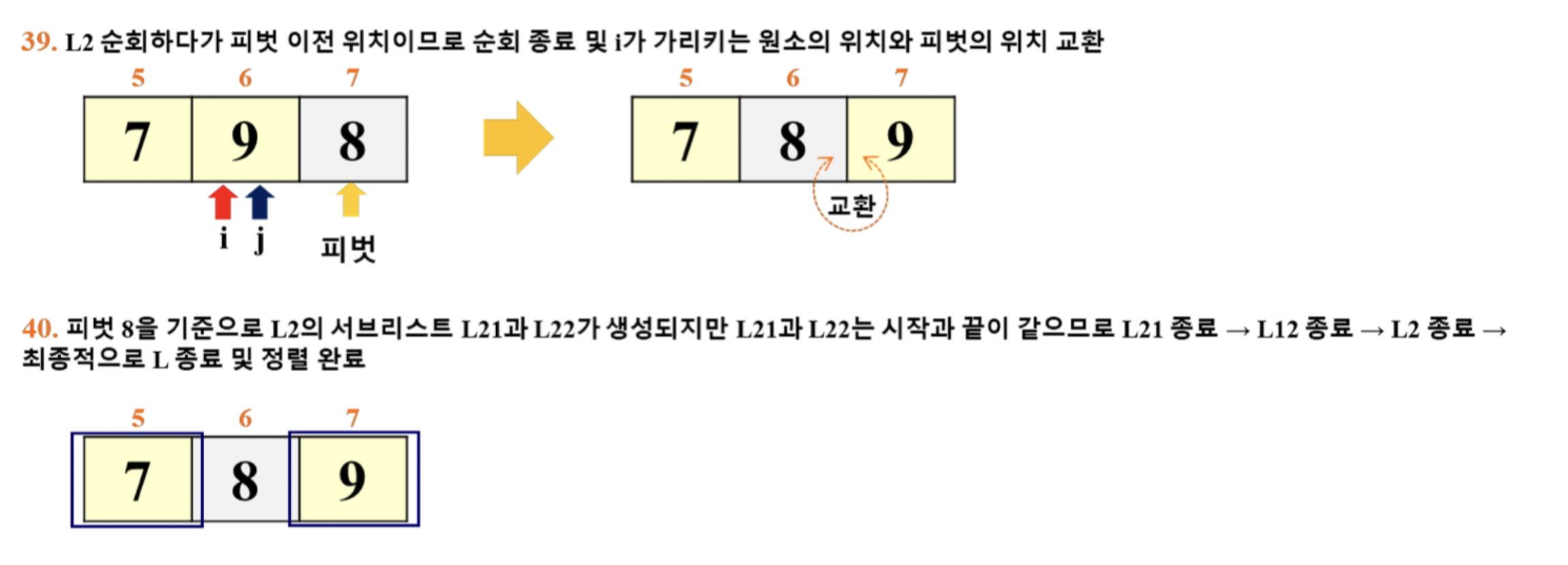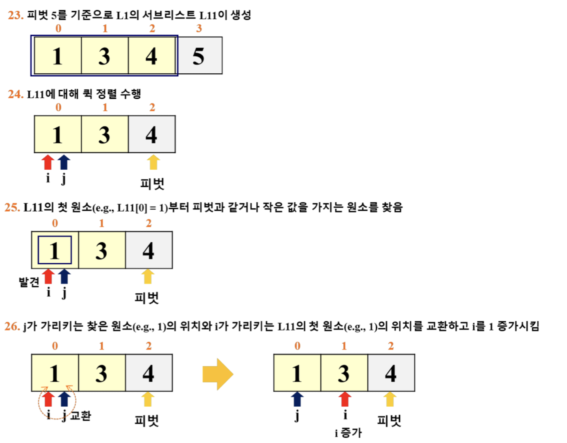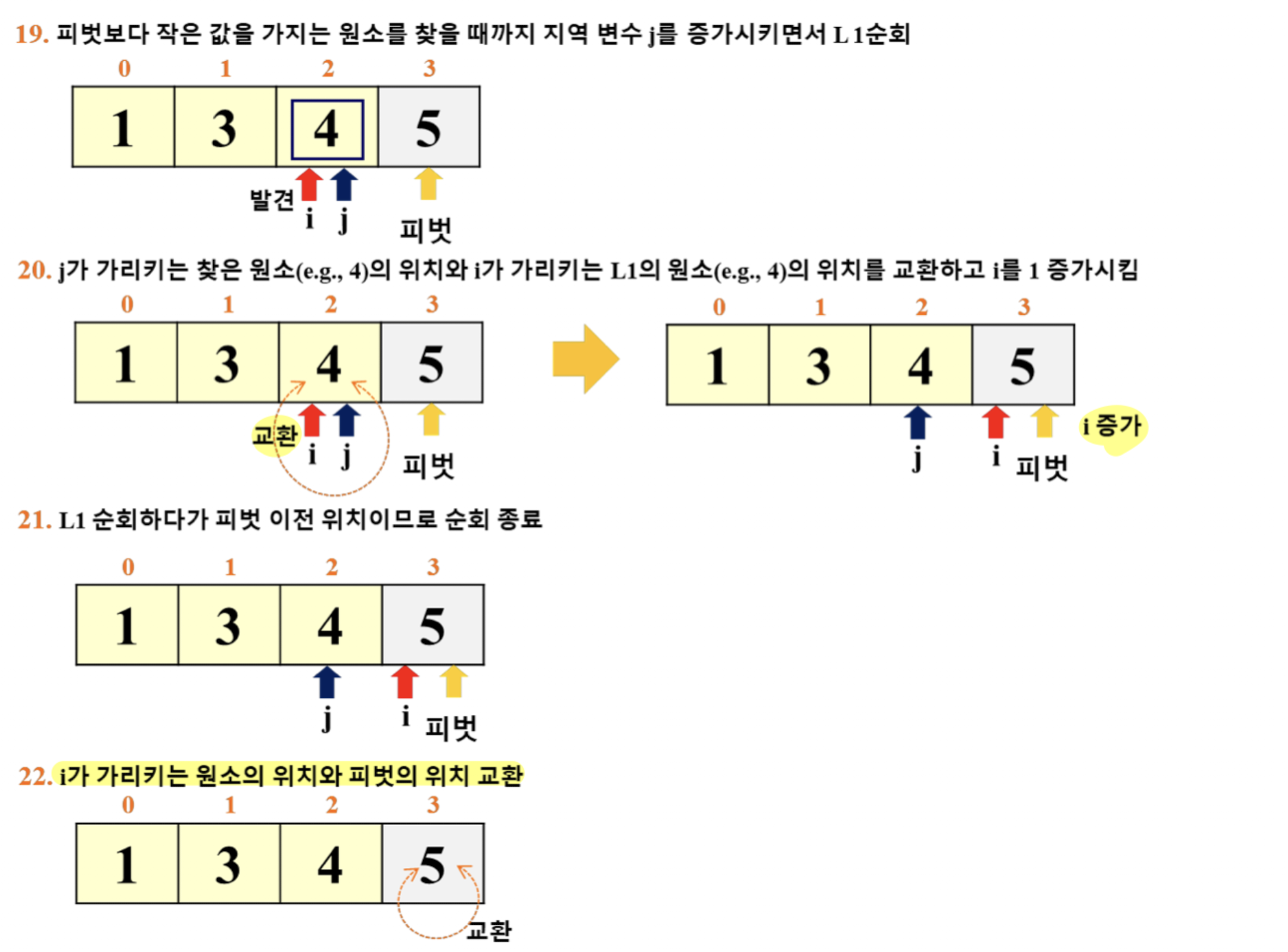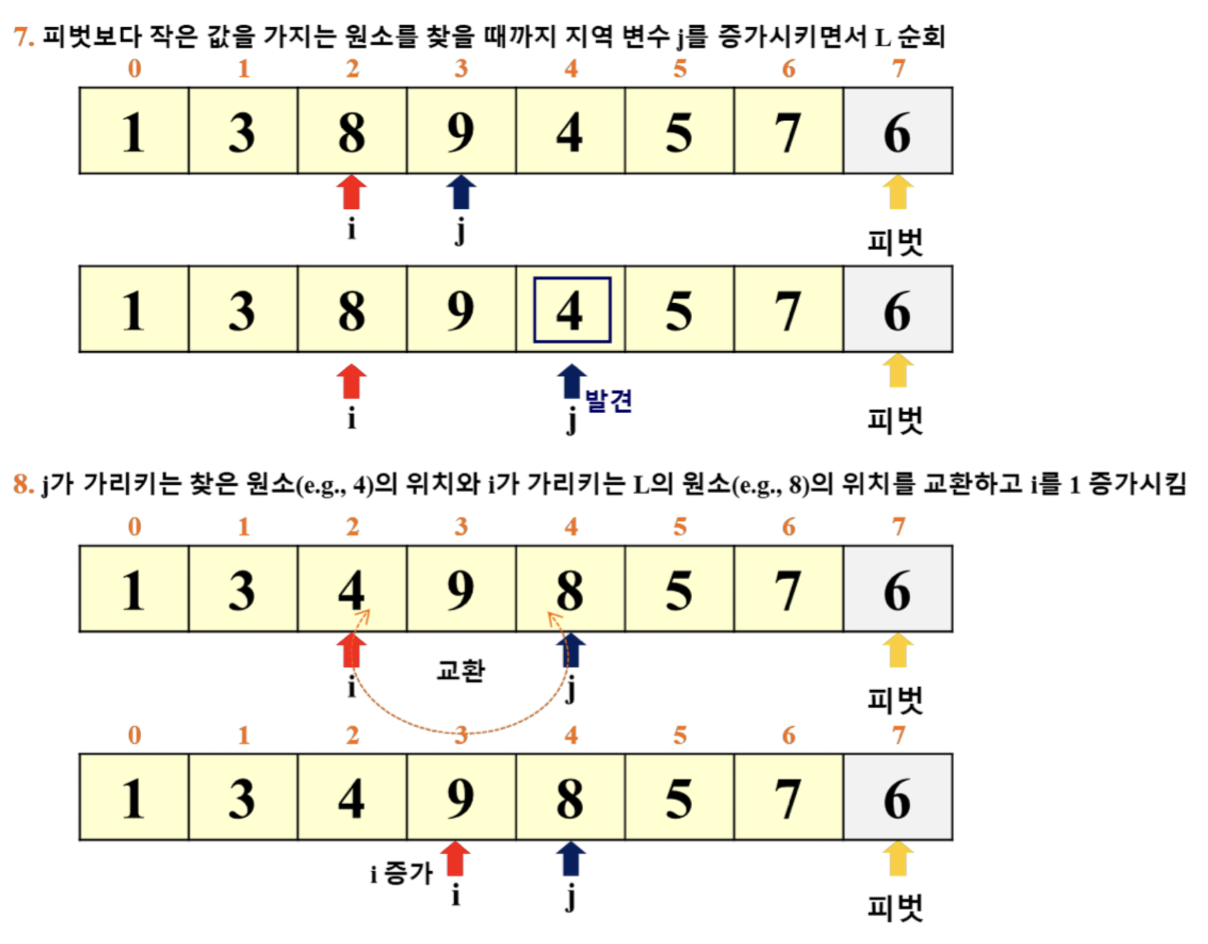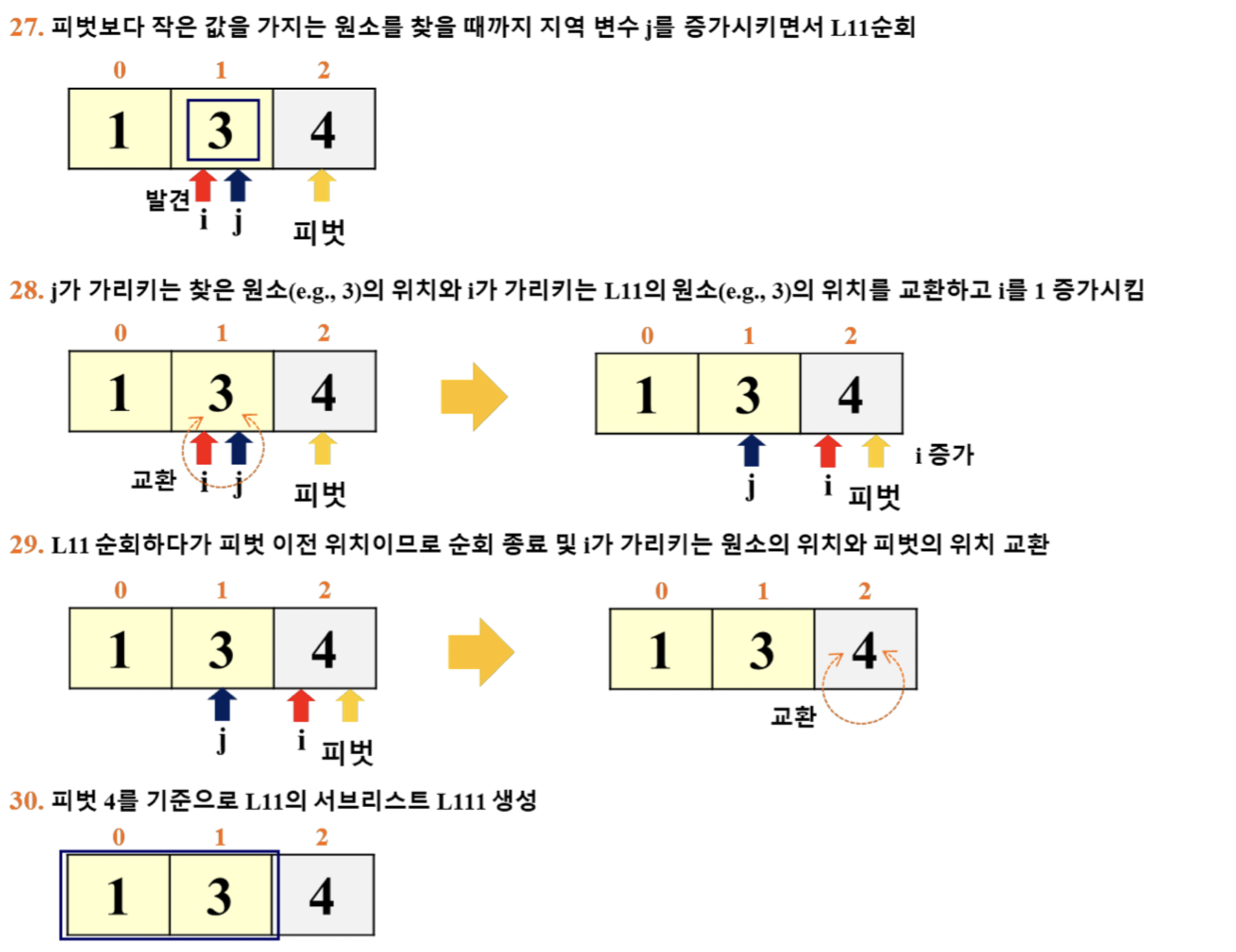 - 이 예시에서는 '리스트의 마지막 원소'를 피벗으로 선택