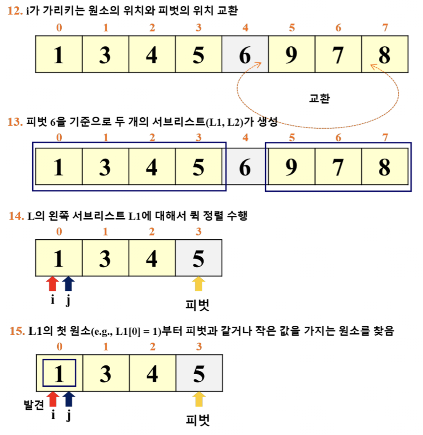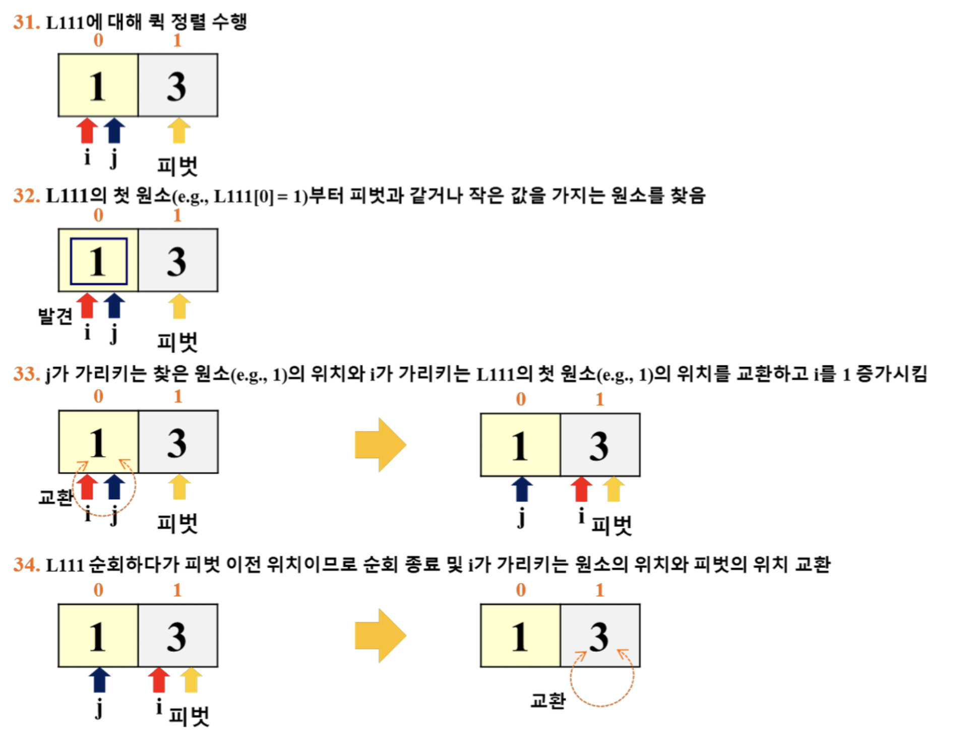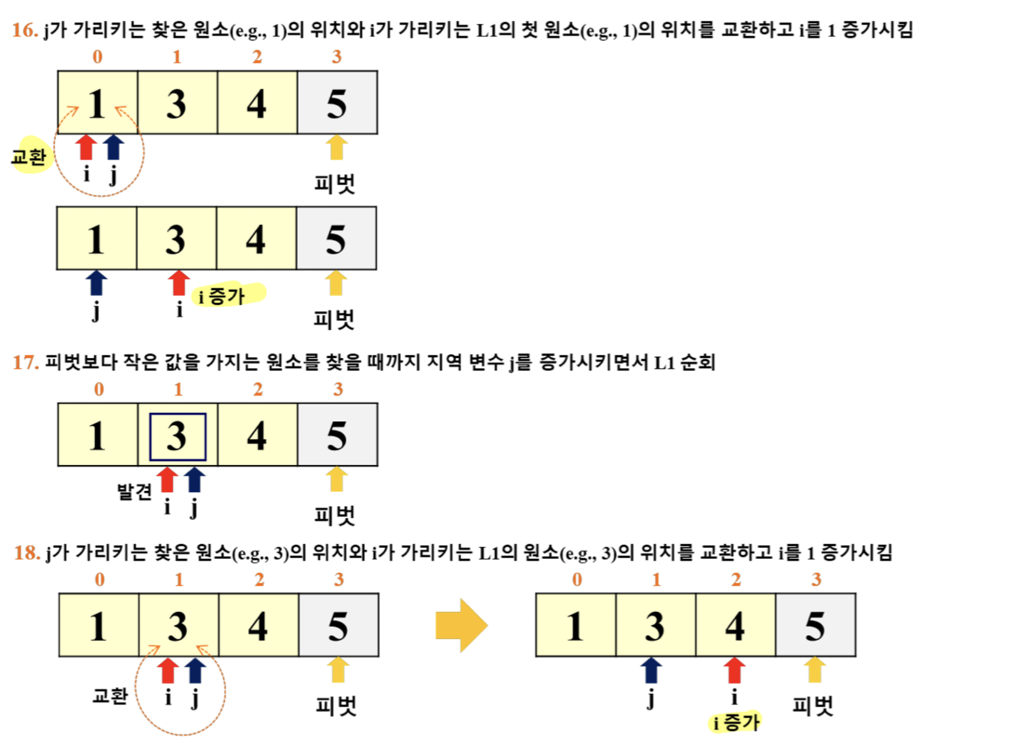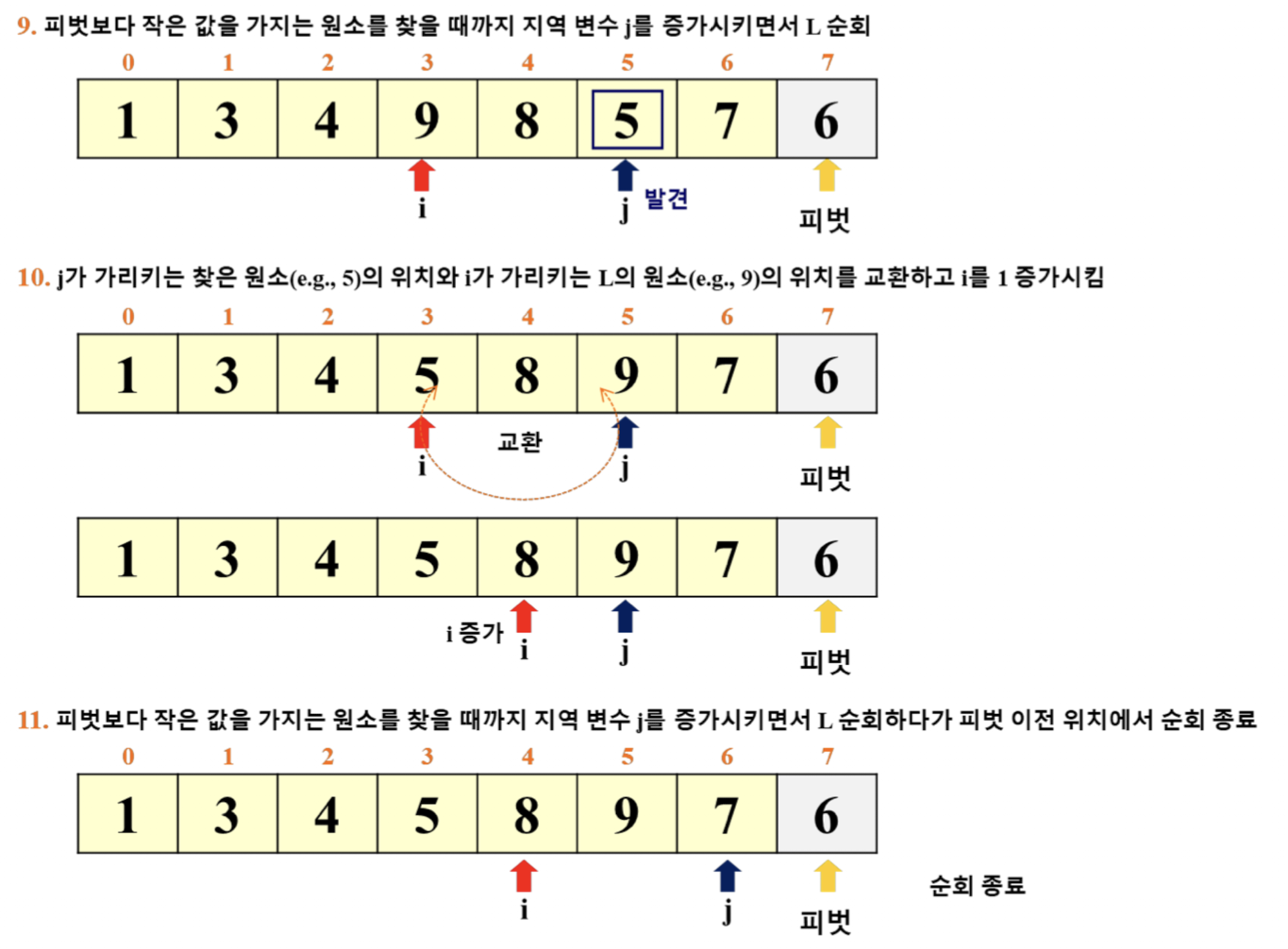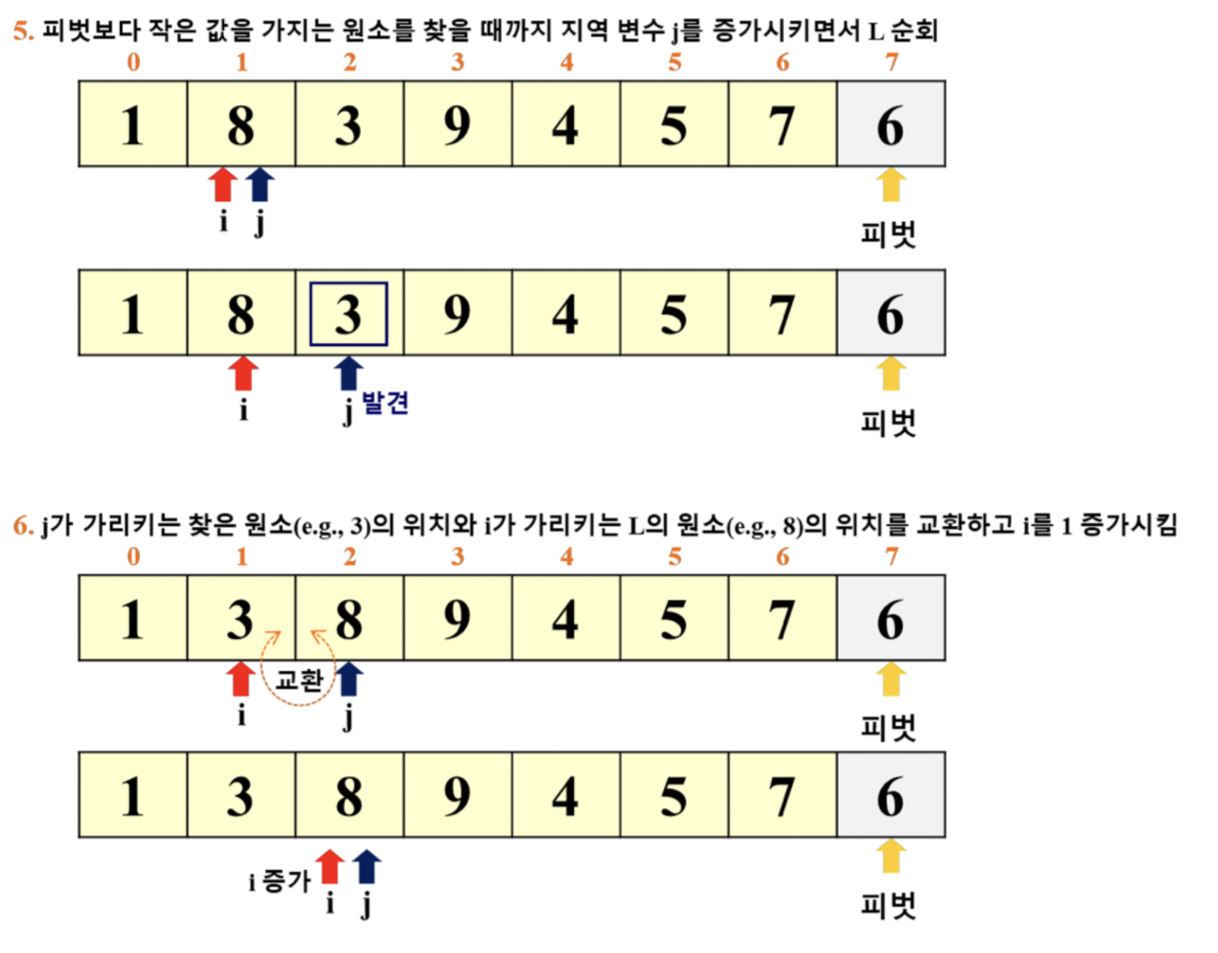 - 이 예시에서는 '리스트의 마지막 원소'를 피벗으로 선택