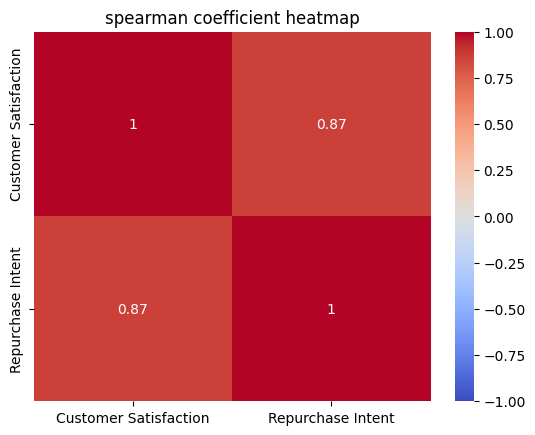 spearman_corr, _ = spearmanr(df['Customer Satisfaction'], df['Repurchase Intent']) # _: p-value
