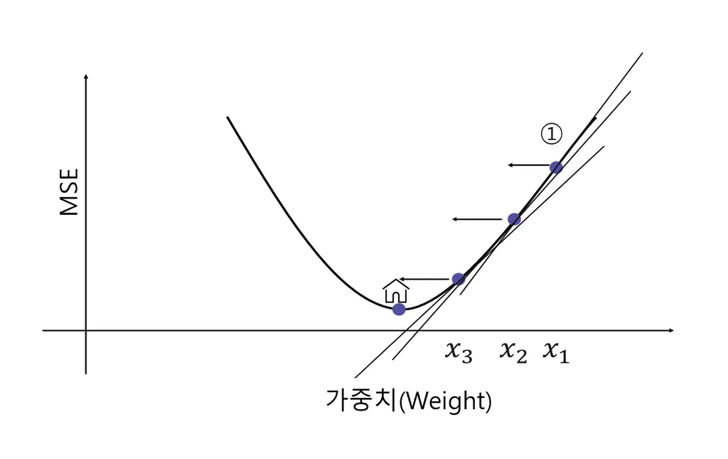 모델의 손실 함수를 최소솨하기 위해 모델의 가중치를 반복적으로 조정하는 최적화 알고리즘.