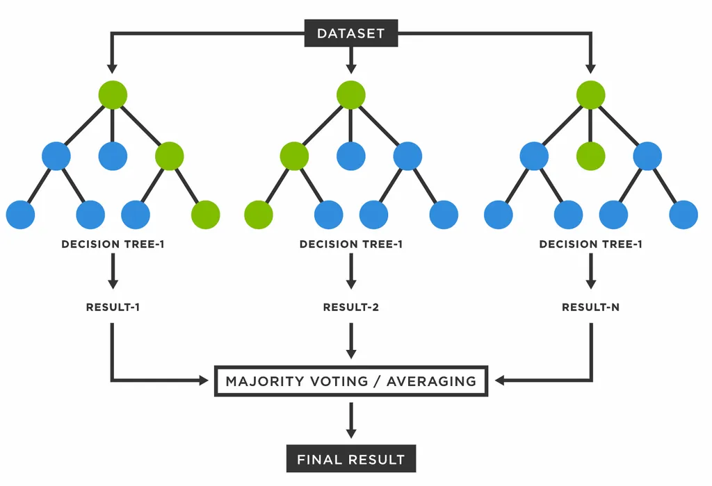 의사결정 나무의 과적합 취약성과 불안정성을 보완하기 위한 아이디어로, 트리 여러 개를 결합하여 숲(forest)를 만드는 것.