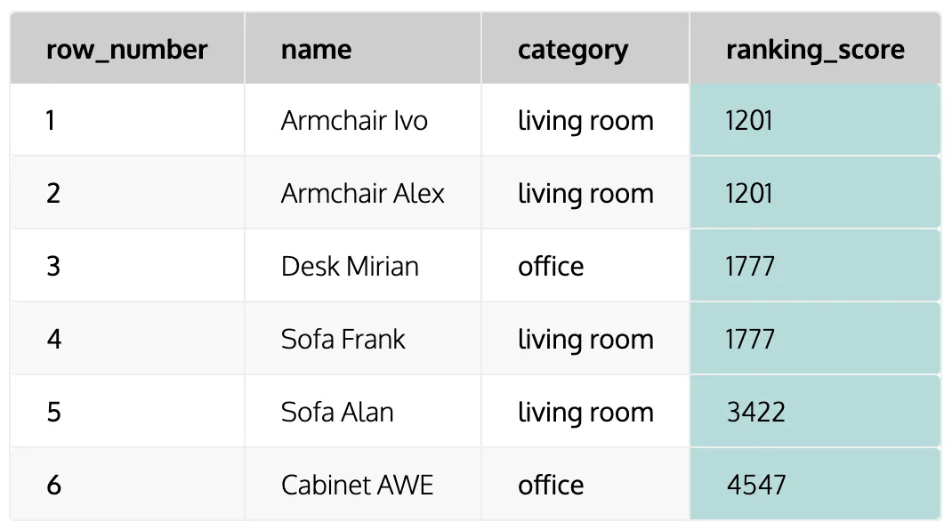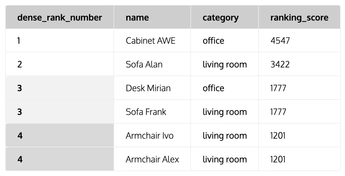 DENSE_RANK() OVER(ORDER BY ranking_score DESC) AS dense_rank_number,