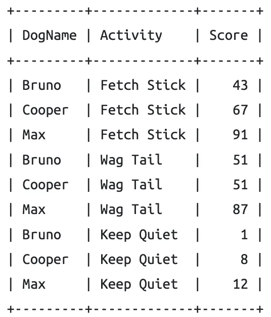 | Cooper | Fetch Stick | 67 | 0.5 |