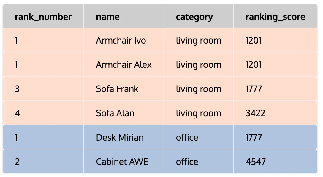 RANK() OVER(PARTITION BY category ORDER BY ranking_score) AS rank_number,