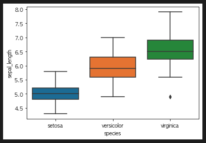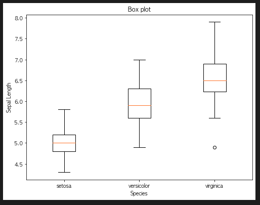 sepal_length_list = [iris[iris['species']== s]['sepal_length'] for s in iris['species'].unique()]