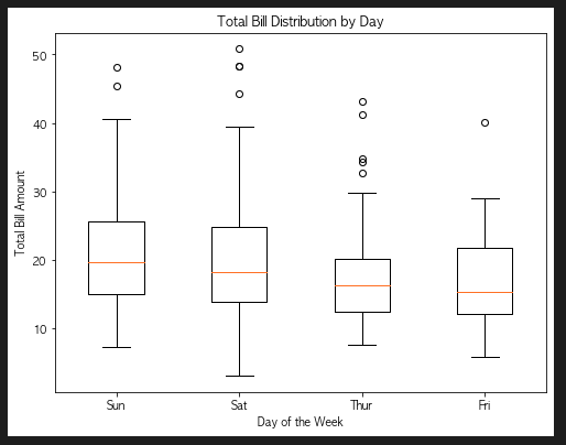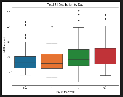 5. 요일별 식사 금액 분포 with box plot