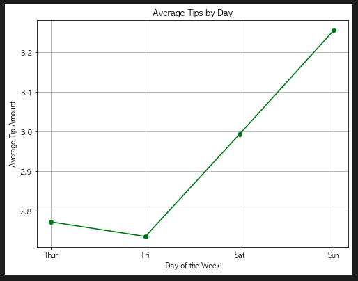 1. 요일별 팁 금액 평균 with line chart