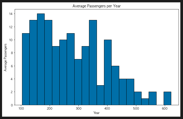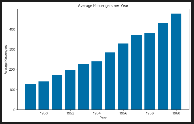 2. 연도 별 평균 승객 수 with bar graph