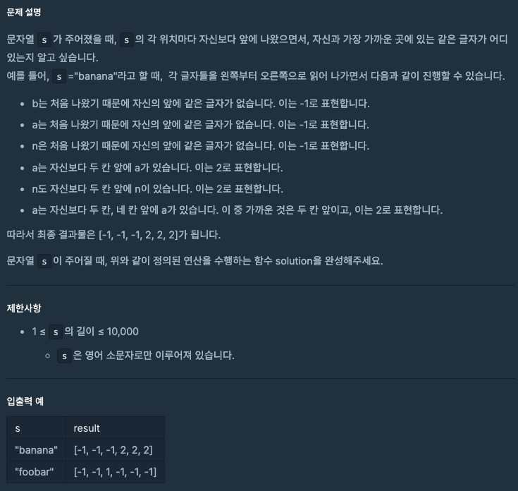 알고리즘 코드카타 50번 - 가장 가까운 같은 글자