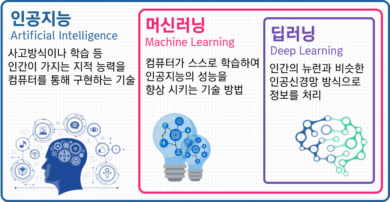 따라서, 딥러닝은 머신러닝의 한 부분으로 볼 수 있으며, 머신러닝이 포함하는 여러 방법 중 하나가 딥러닝인 것이다.