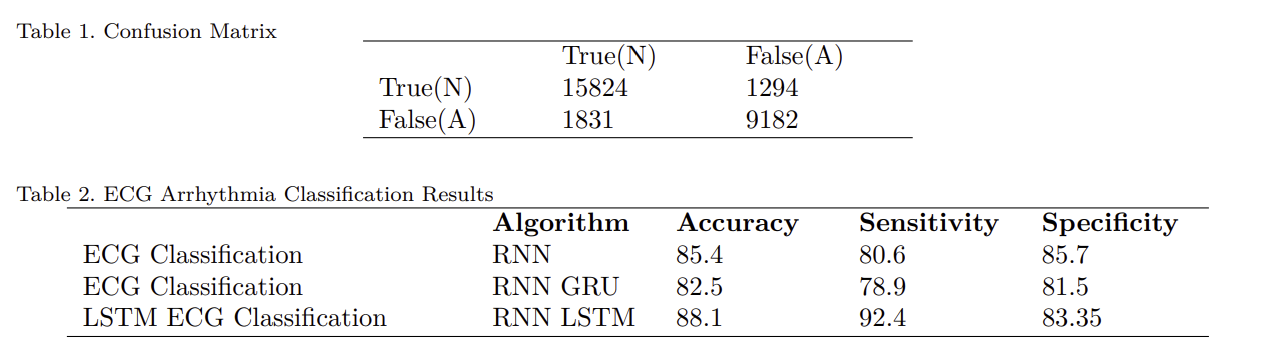 Since the goal was to classify the normal and abnormal(<- it is a binary classification) beats in an ECG, the measurements are described by confusion matrix.