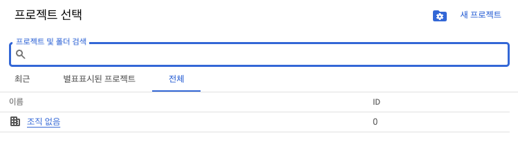 상단 오른쪽의 프로젝트 드롭다운 메뉴를 클릭하고, 새 프로젝트를 선택한다.