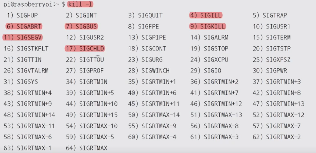 커널은 시그널 타입에 따라 프로세스를 달리 처리한다.