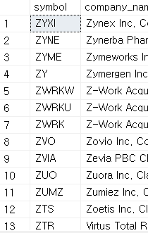 select * from nasdaq_company WHERE symbol not like '%[-,^,=]%'