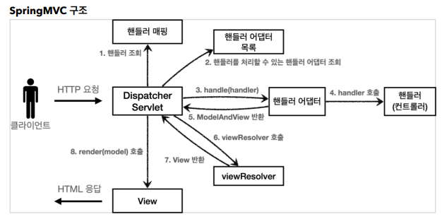 스프링 MVC도 프론트 컨트롤러 패턴으로 구현되어 있으며, 스프링 MVC의 프론트 컨트롤러가 바로 디스패처 서블릿(DispatcherServlet)이다.