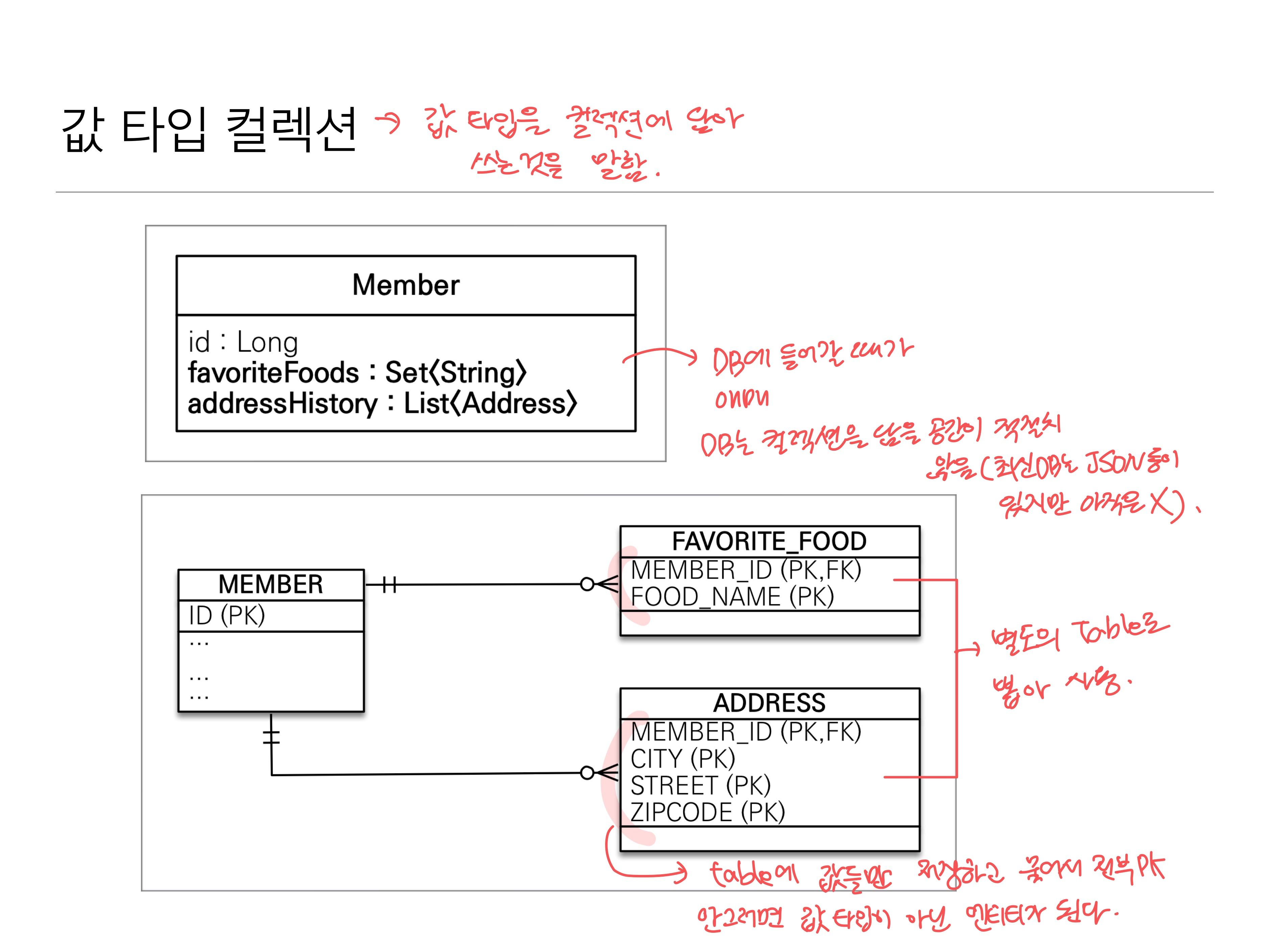 (일대다 관계를 위한 엔티티를 만들고, 여기에서 값타입을 사용)