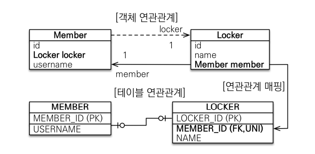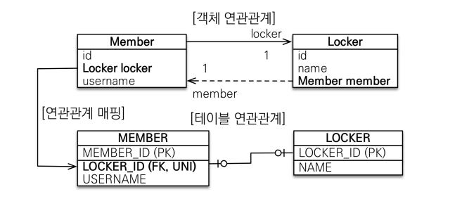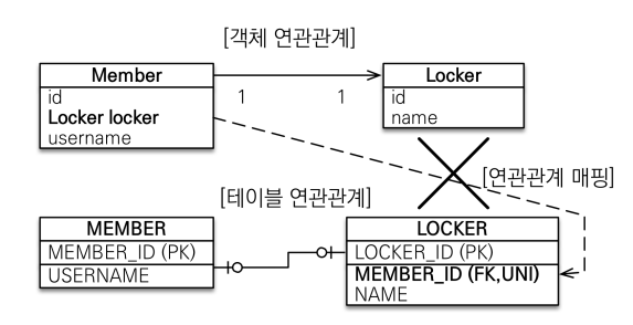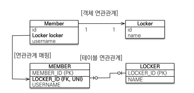 ex : 회원은 하나의 사물함만 사용하고, 사물함도 하나의 회원에 의해서만 사용되는 경우