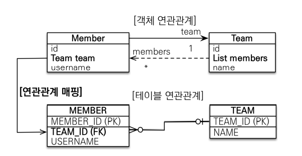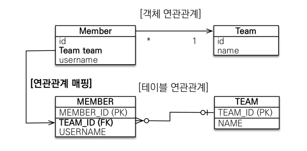 주 객체가 대상 객체의 참조를 가지는 것처럼 주 테이블에 외래 키를 두고 대상 테이블을 찾는다.