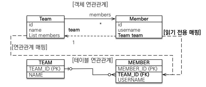 여기서는 '일'에 해당하는 Team이 연관관계의 주인이다.